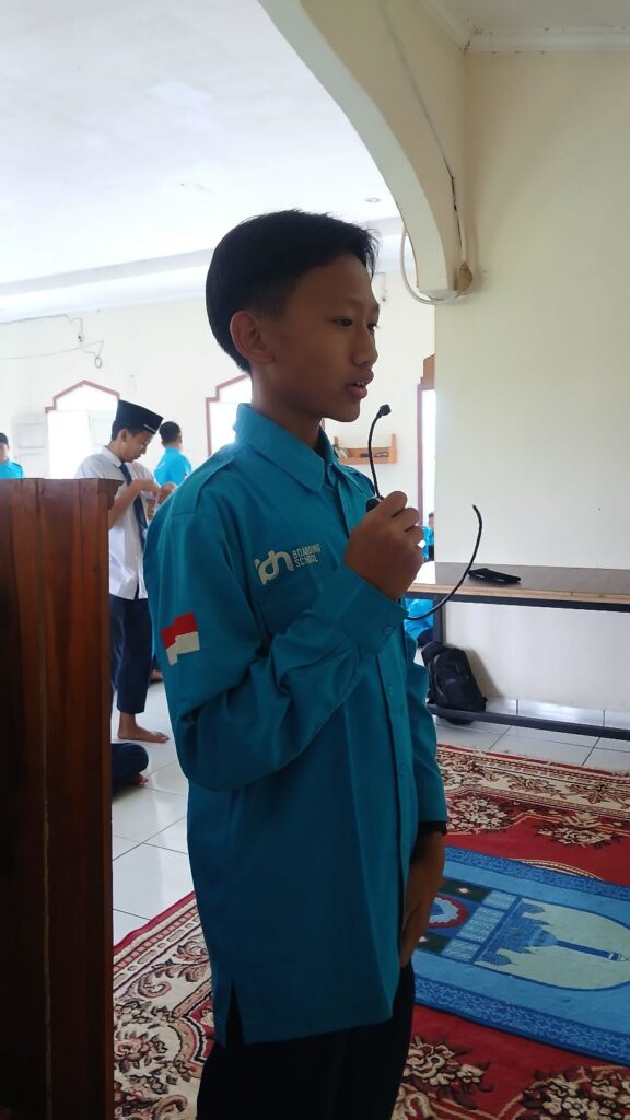 ASSALAMUALAIKUM WAROHMATULLAHI WABAROKATUH EVERY ONE THIS IS MY ADZAN PROJECT IN SEMESTER one in eight grade so i do the adzan in the mosque in dzuhur time and i very nervous because this my first time adzan i so many people and the person photo me is ustad khoirul
