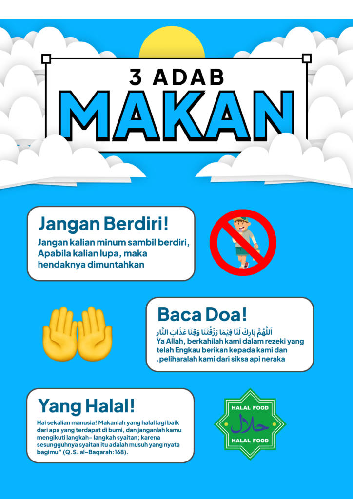 Hello Guys This Is My third Project multimedia In Semester one in eight grade The Name is make some infografis design with figma and in figma and the title is 3 adab makan and text and rectangle and i search the reference in google and i make this project in just one day!!! its so easy project and my multimedia teacher is mr.dimas