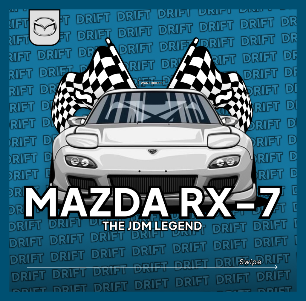 Hello Guys This Is My fourth Project multimedia In Semester one in eight grade The Name is make some instagram post with figma and in this project i make about maxda rx-7 search the reference in google and i make this project in just two day!!! its so easy project and my multimedia teacher is mr.dimas