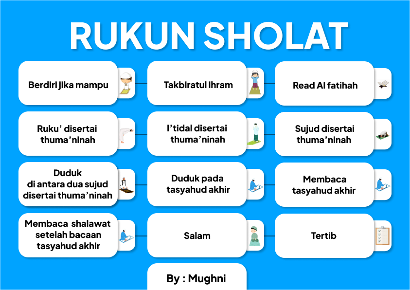 ASSALAMUALAIKUM WAROHMATULLAHI WABAROKATUH EVERY ONE THIS IS MY FIKIH PROJECT IN SEMESTER TWO THE PROJECT IS MAKE POSTER ABOUT RUKUN SHOLAT AND THERE IS TWELVE RUKUN SHOLAT IN THE POSTER I MAKE THIS IN FIGMA AND I MAKE THIS IN ONE DAY AND MY TEACHER FIKIH IS USTAD KHAIRUL